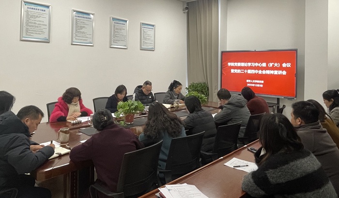 顾秀平围绕学习领会习近平总书记在党的二十届四中全会上的重要讲话精神和《中共中央关于制定国民经济和社会发展第十五个五年规划的建议》,从“提高政治站位、锚定学科定位、强化行动自觉”三个维度,对党的二十届四中全会精神作了深入宣讲和系统阐释。她表示,党的二十届四中全会是在“十四五”规划即将圆满收官、“十五五”规划全面擘画的关键节点召开的一次重要会议。蓝图已经绘就,关键是真抓实干、狠抓落实,全院上下要深刻领悟“两个确立”的决定性意义,增强“四个意识”、坚定“四个自信”、做到“两个维护”,把思想统一到全会精神上来,把力量凝聚到落实全会确定的目标任务上来。